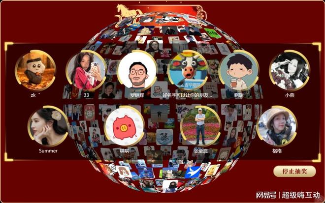 视觉效果炫酷 现场氛围嗨爆主题效果多样,符合个性化需求,自带高端属性,打造科技满满的年会现场氛围。观众扫码进入页面,头像组成3D图像,大屏幕展现动效图形,主办方点击抽奖按钮,参与者收到中奖通知。操作简单,互动性强,符合年会气氛。